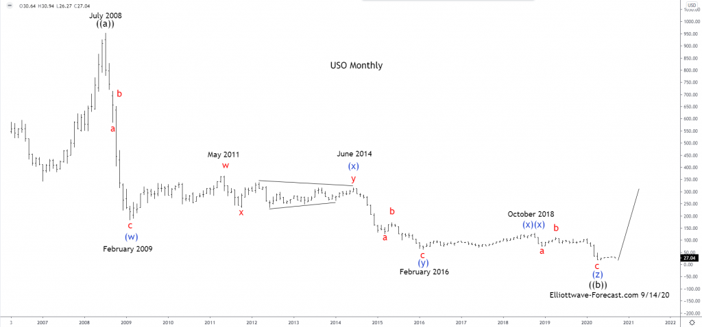 The weekly chart below shows the soybean oil front contract ZL #F. From the all-time lows, the prices have developed a cycle higher in black wave ((w)) of a grand super cycle degree. It has ended in March 2008 at 71.23. From the highs, a correction lower in wave ((x)) has unfolded as an Elliott Wave zigzag pattern. In 12 years, ZL #F has become cheaper by more than 60% reaching 24.61 level. It is the preferred view that an important bottom on April 2020 has been set and the black wave ((x)) has ended. From the lows, the recovery in prices may have started.