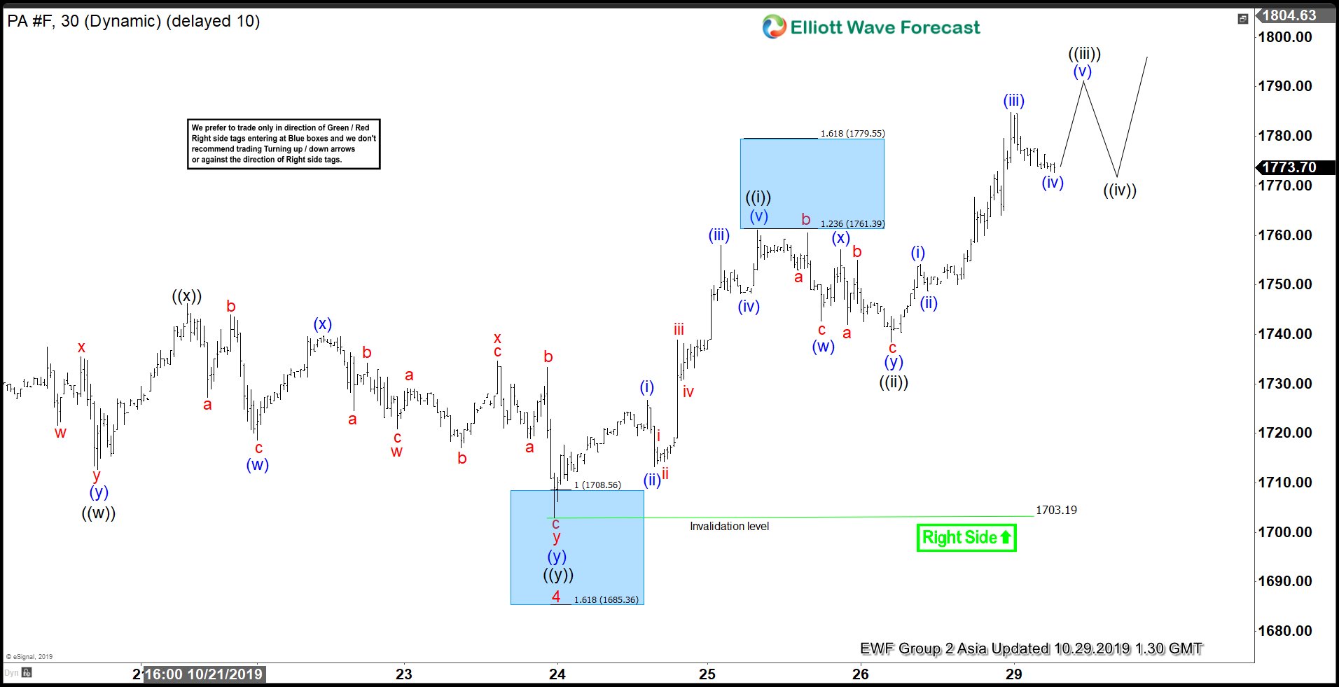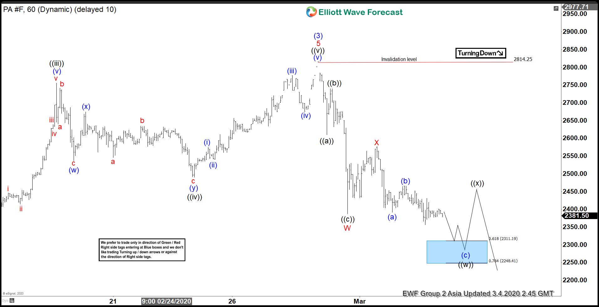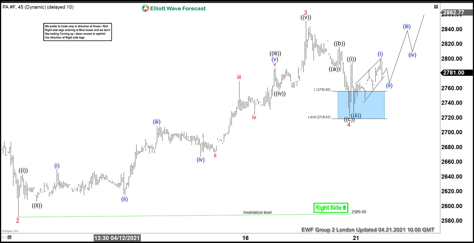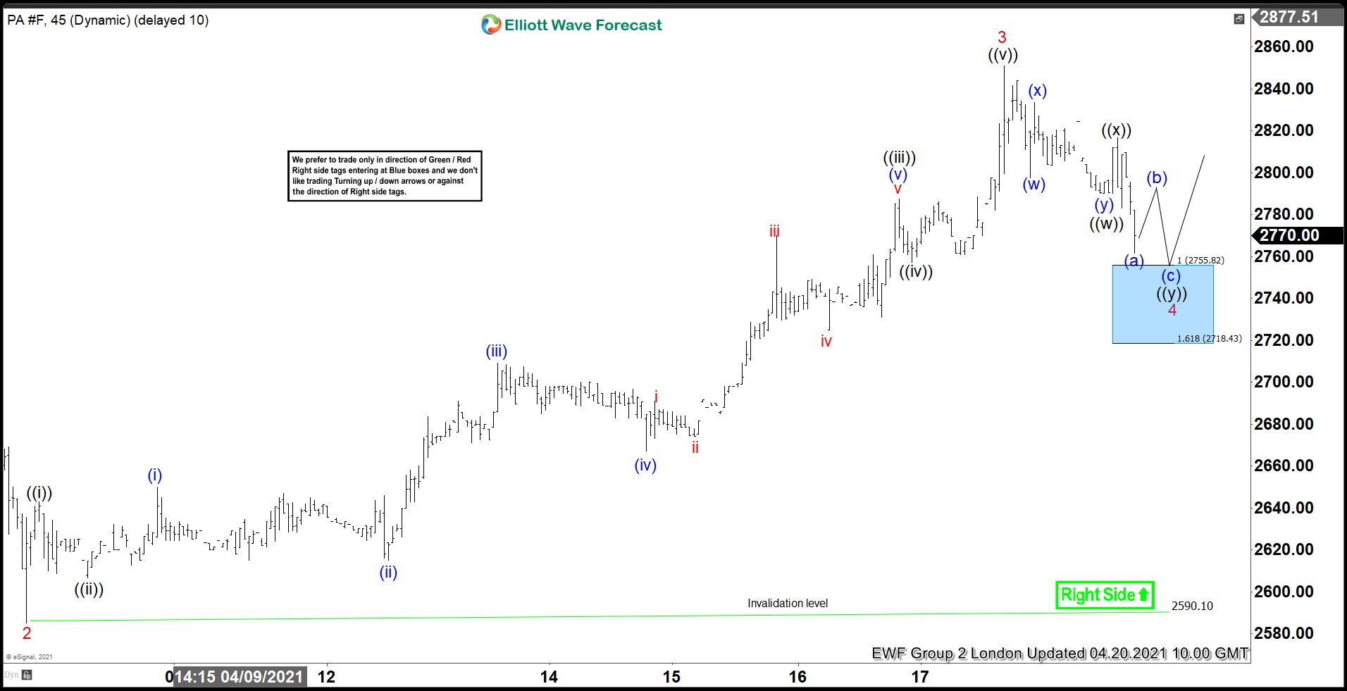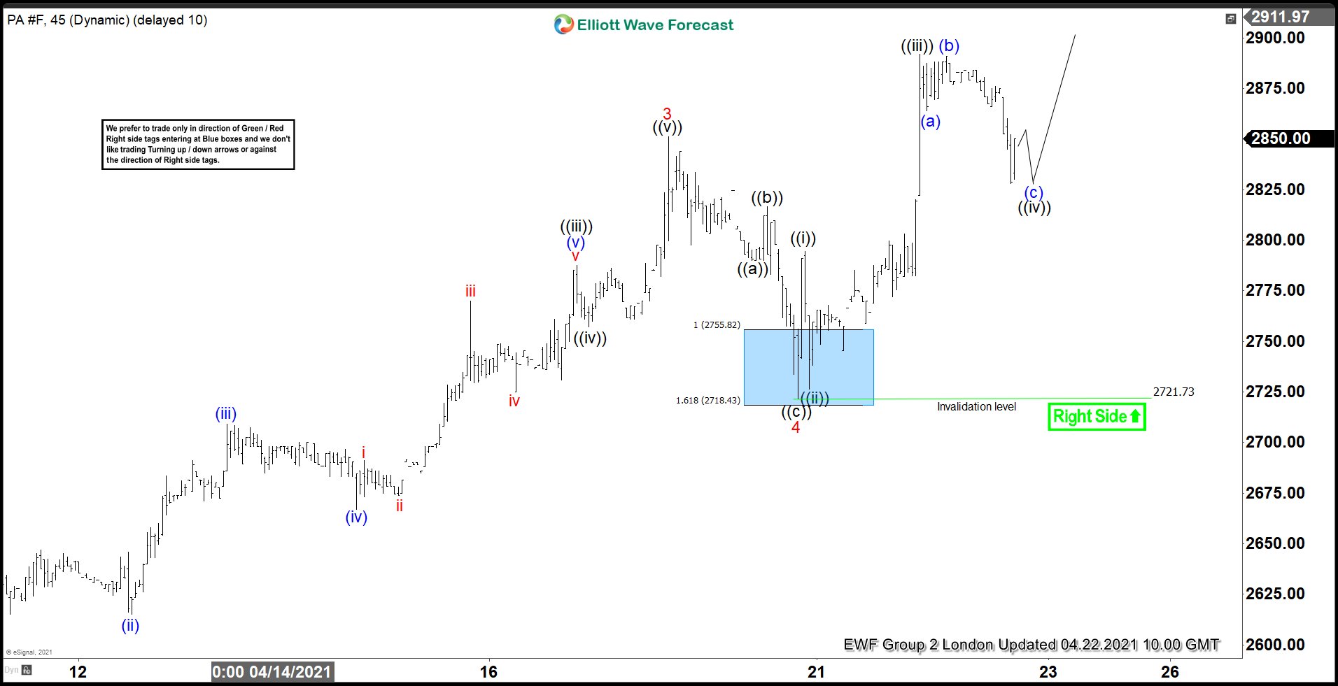 Palladium $PA_F Elliott Wave 1 Hour Chart 4.20.2021
