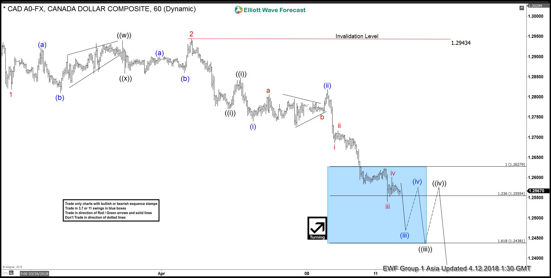 USDCAD 4 Hour Elliott Wave Analysis 7.30.2018