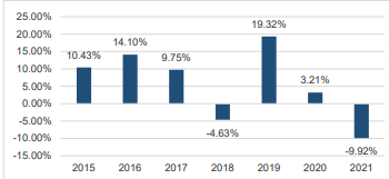 | Total Return | 47.82 % | 13.01 % | 6.73 % | 4.11 % | 7.10 % |