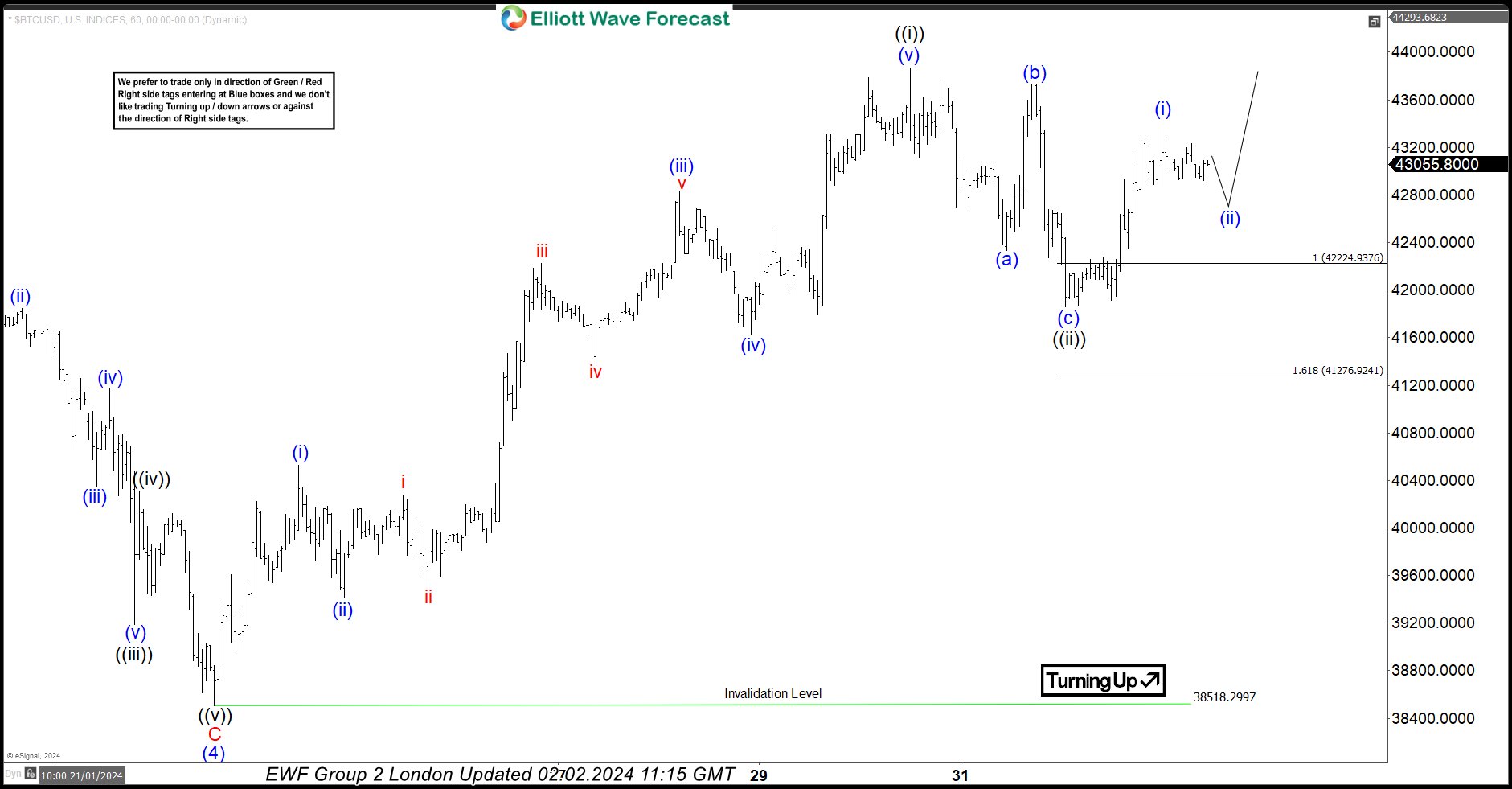 BTCUSD Elliott Wave 1 Hour Chart 02.02.2024