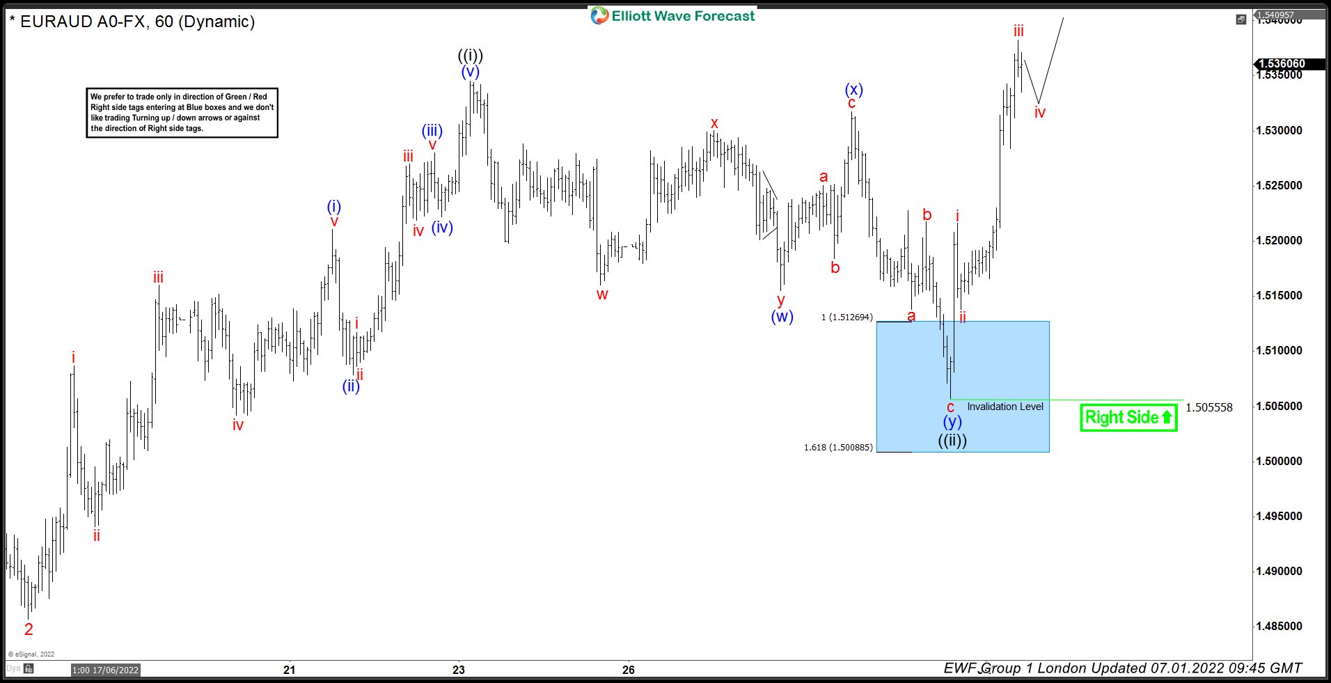 EURAUD Elliott Wave 1 Hour London Chart 07.01.2022