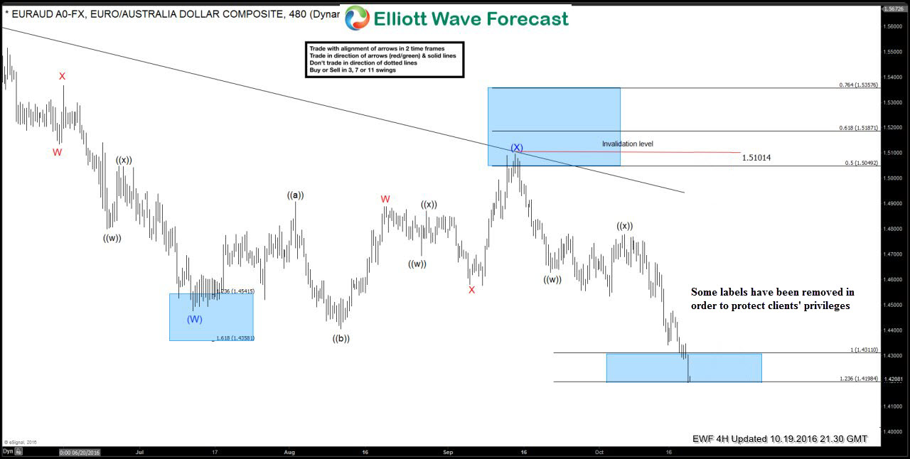 $EURAUD 10.19.2016 target area is reached. Note: Some labels have been removed on the chart in order to protect clients’ privileges. If you’re interested in the future path of $EURAUD, you can find new Elliott Wave analysis in the membership area of EWF. ( If not a member yet, all you have to do is to Sign Up for Free 14 Days Trial )
