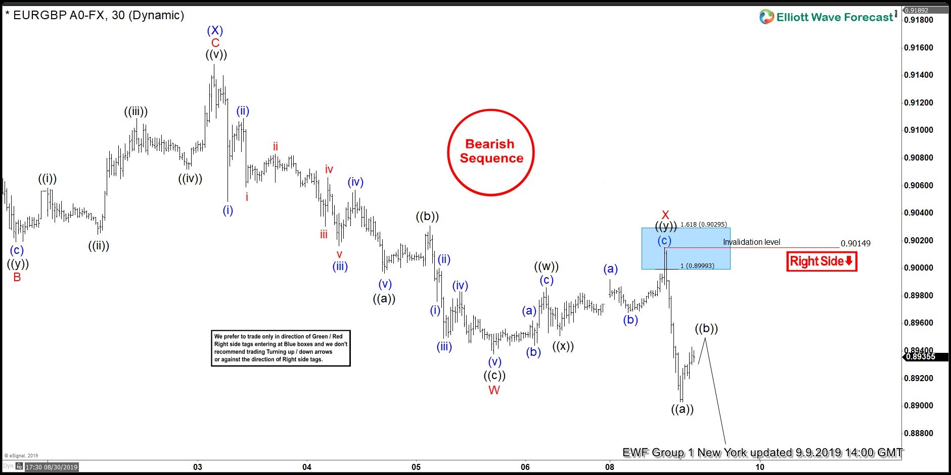EURGBP 1 Hour New York Elliott Wave Analysis 9.9.2019