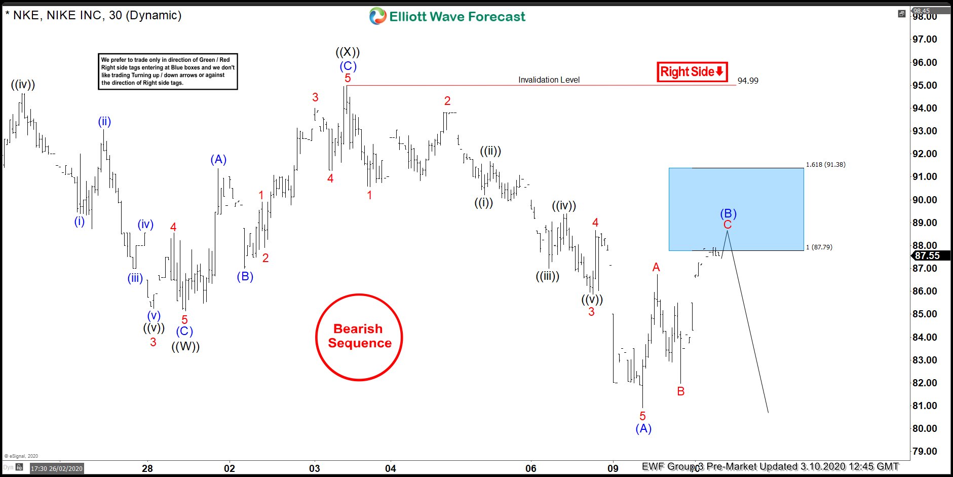 NIKE 1 Hour Elliott Wave Analysis 3.10.2020