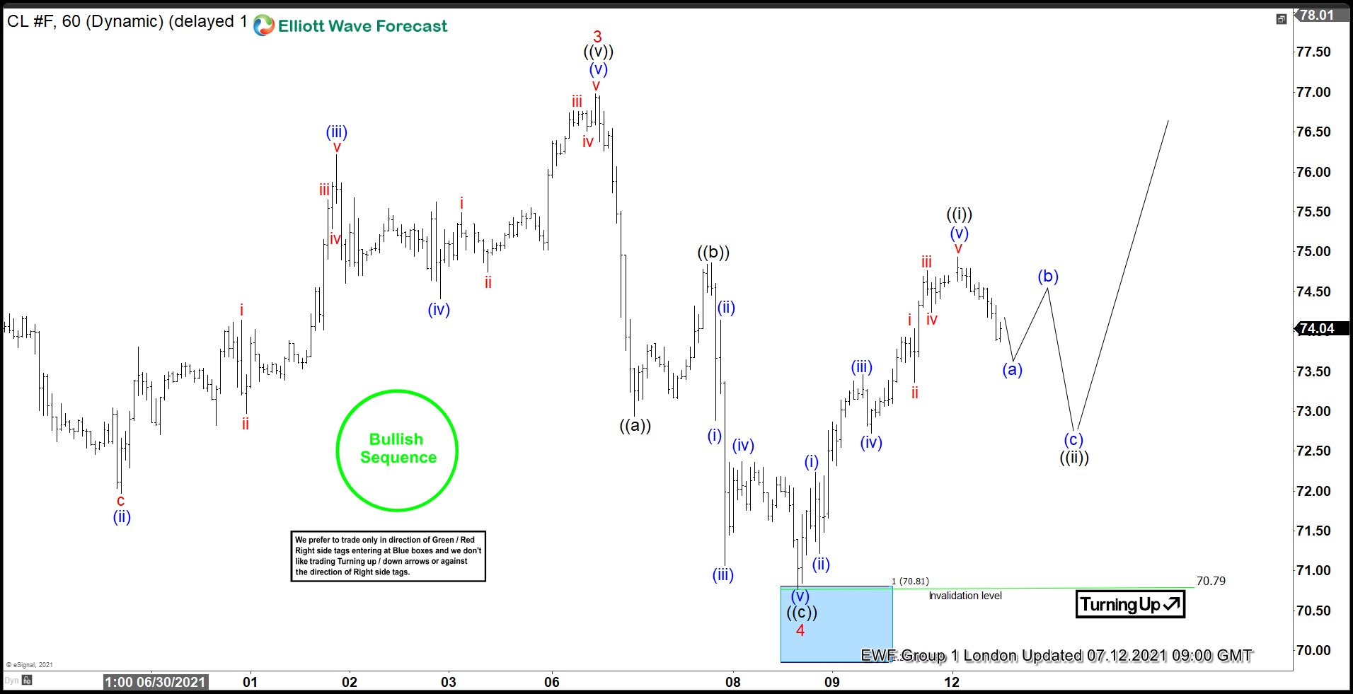 OIL Elliott Wave 1 Hour Chart 7.12.2021