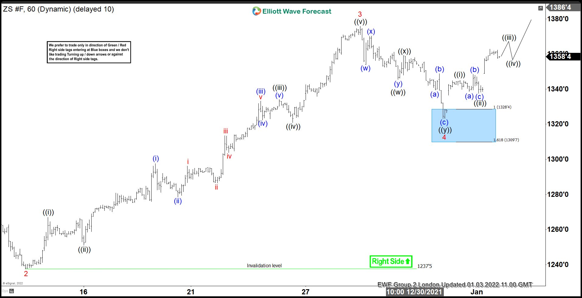 Soybeans $ZS_F Elliott Wave 1 Hour Chart 12.31.2021