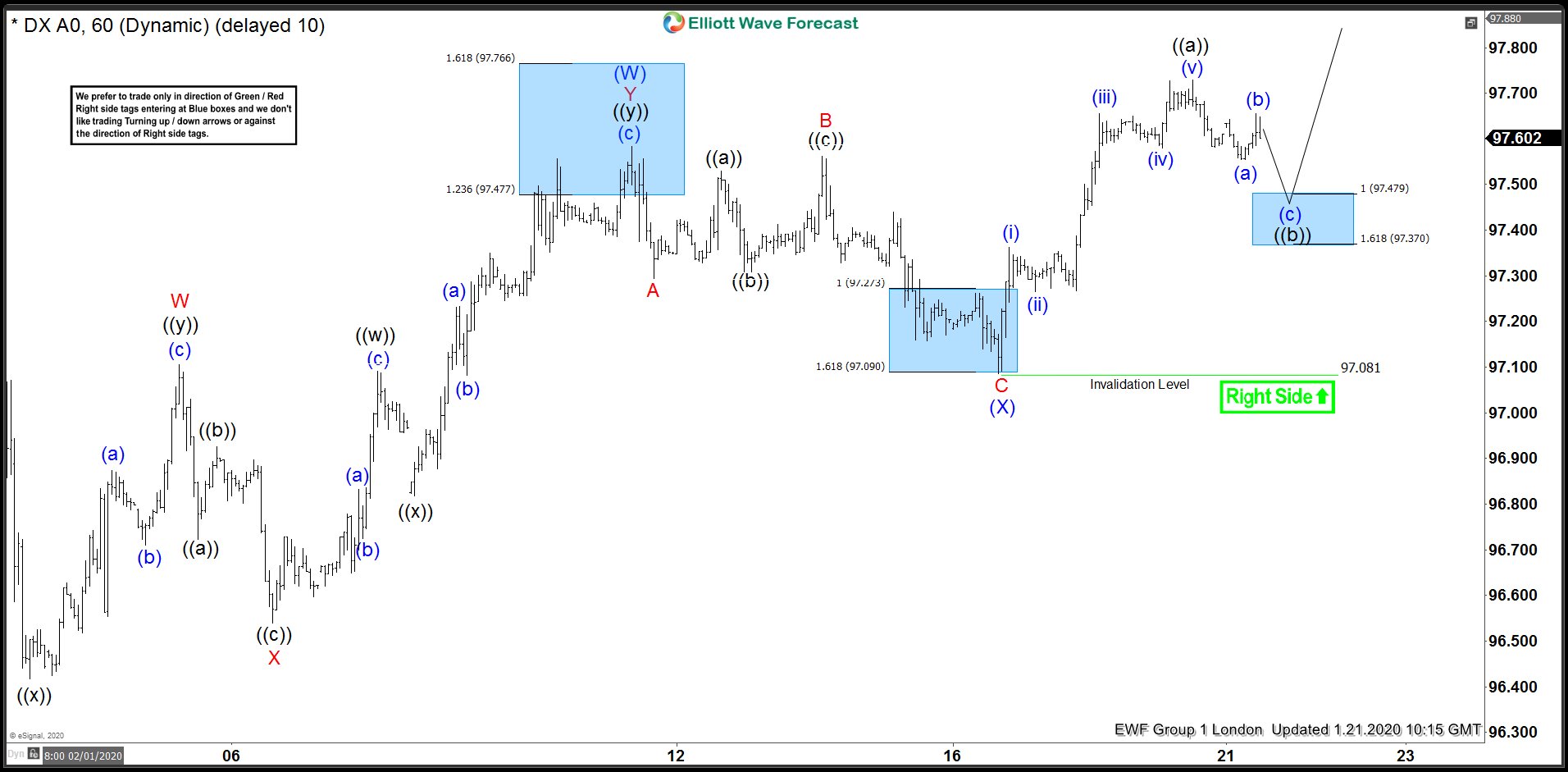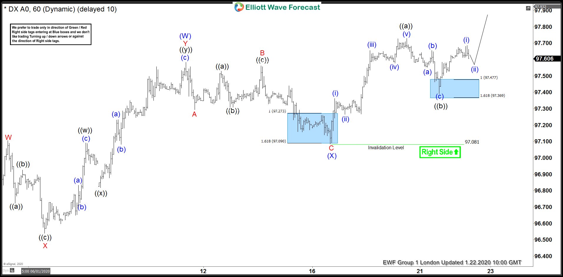 USDX 1 Hour Elliott Wave Analysis 1.22.2020