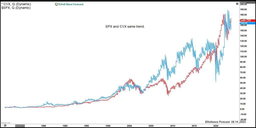 Overlay of S&P 500 (SPX) and Chevron (CVX)