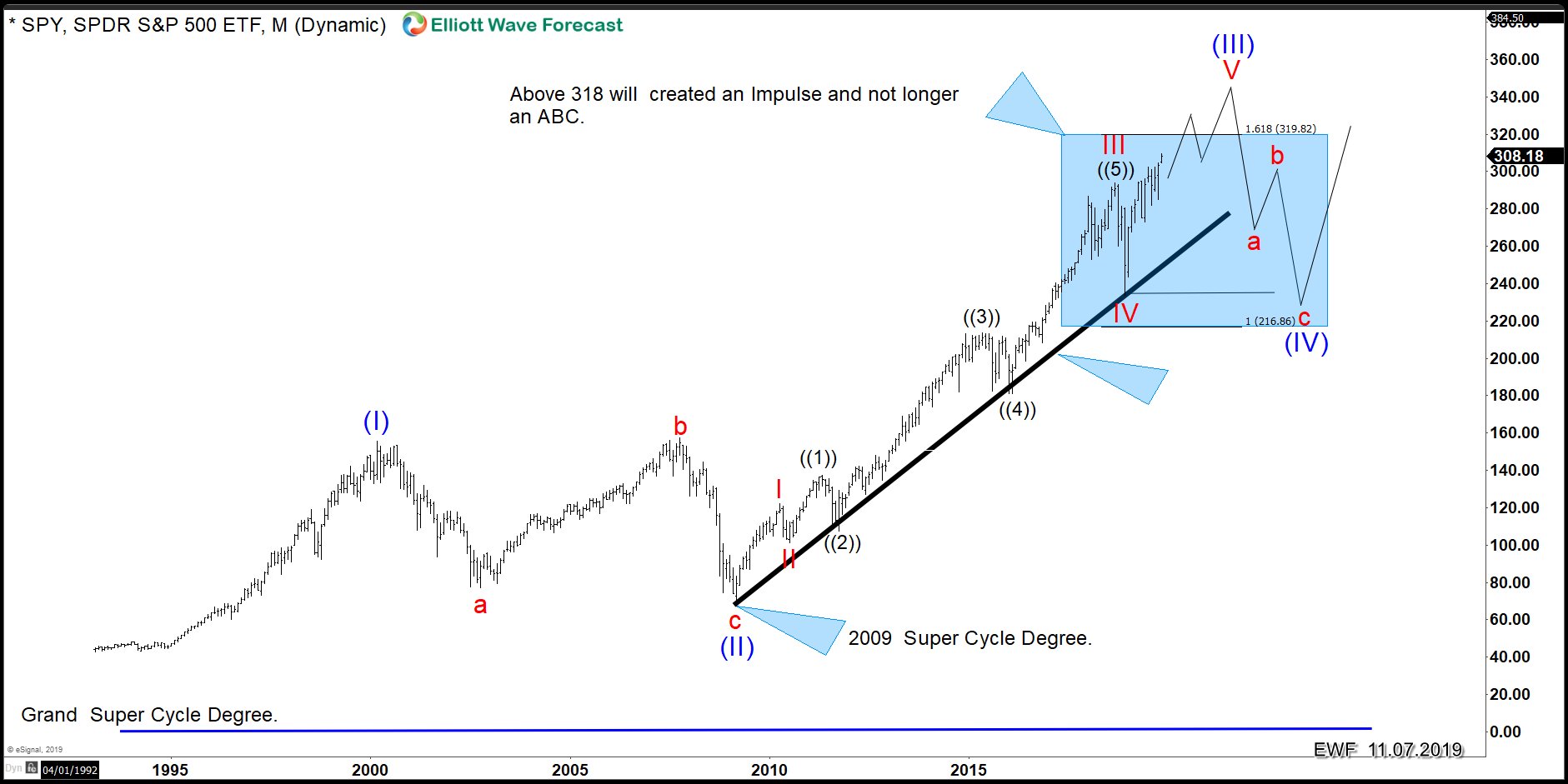 2020 is also an interesting year where something should be happening to create the pullback across the world Indices. We believe the Super Cycle degree from 2009 low ends next year. When it ends, many factors will determine the Elliott Wave counts whether we are ending an ABC from all time lows or we are ending wave (III). One factor for example is the extensions in $SPY and whether the index trades above the 1.618 extension which comes at $319.00. Another factor is where the Yen pairs stand when the $SPY dip in 2020 takes place.
