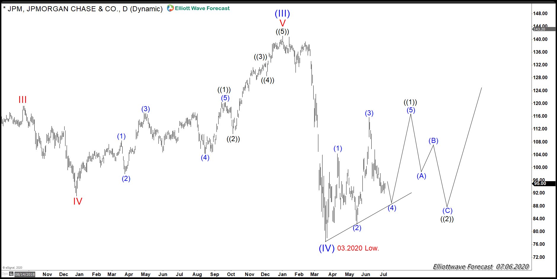The following chart is showing an impulse structure in the Elliott wave Theory, which at this stage looks very similar to the reaction in JPM Chase and we should be coming higher into the wave (V),