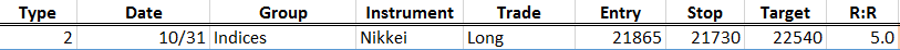 Below is the Live Trading Room journal for the Nikkei long trade