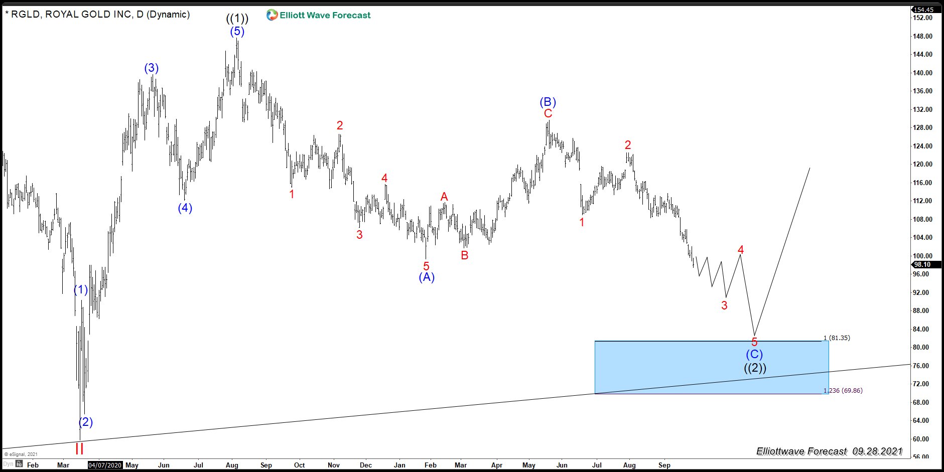 Royal Gold (RGLD) Daily Elliott Wave Chart